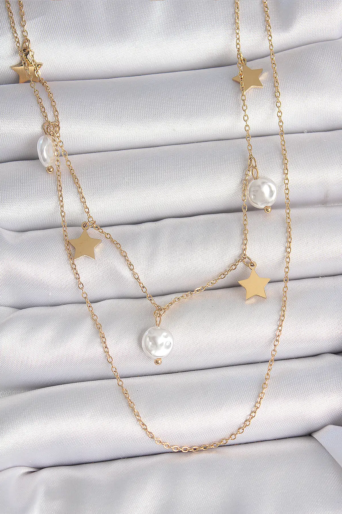 | Etiketler | 316L Çelik Gold Renk 2'Li Zincir Sallantı Yıldız İnci Model Kadın Kolye |