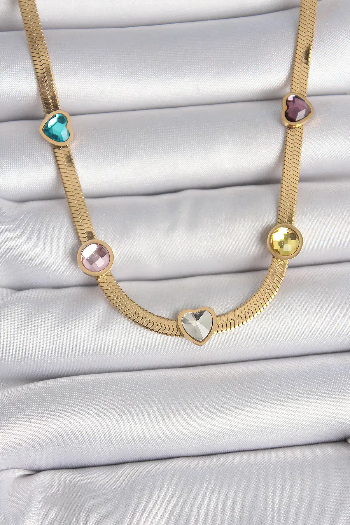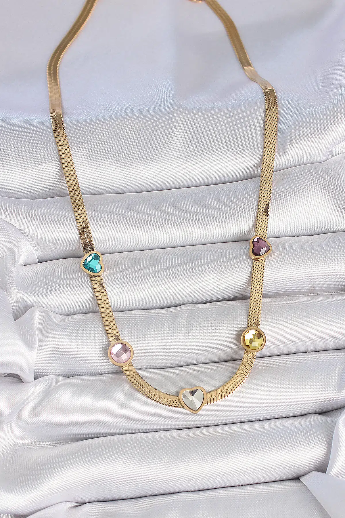 | Etiketler | 316L Çelik Gold Renk İtalyan Zincir Renkli Zirkon Taşlı Kalp Figür Kadın Kolye |
