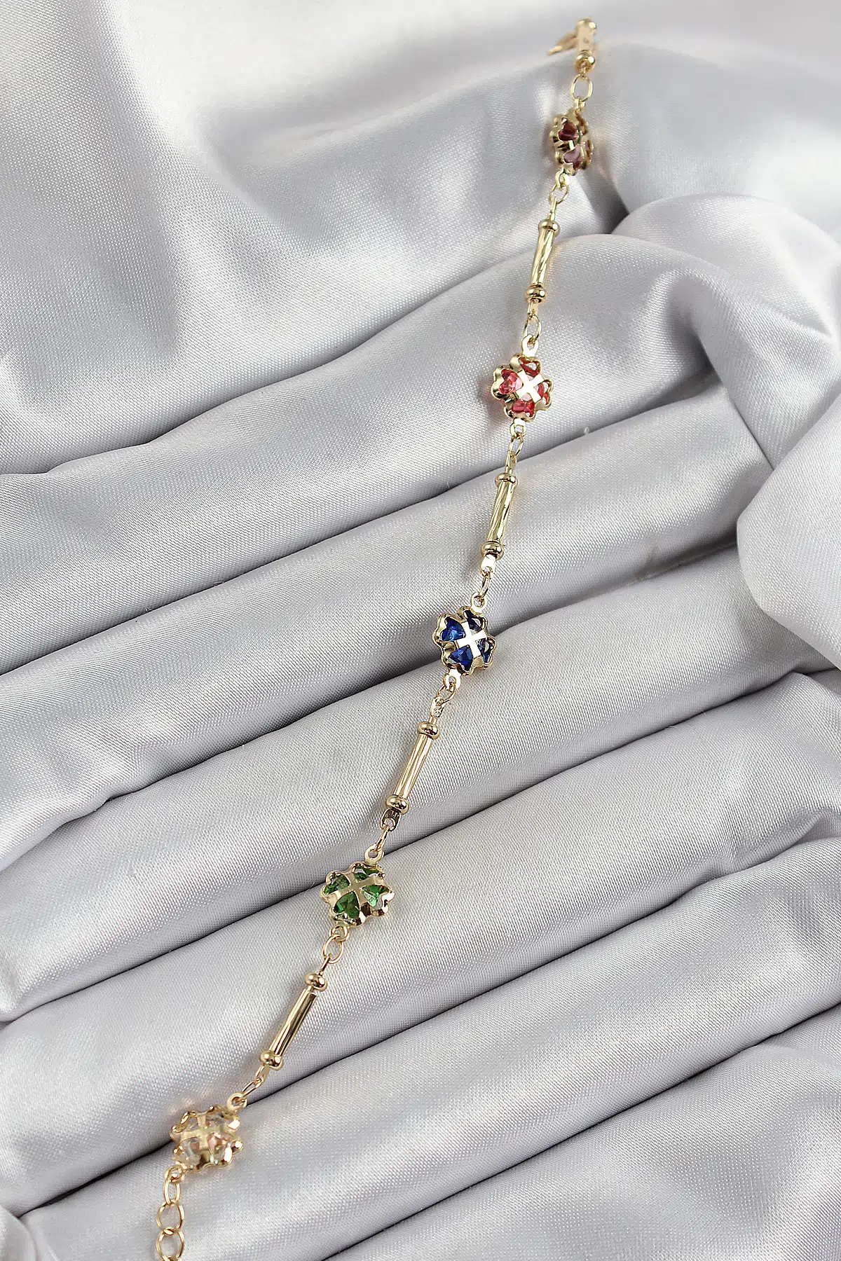 | Etiketler | Pirinç Gold Renk Karışık Renk Yonca Zirkon Taşlı Kadın Bileklik |