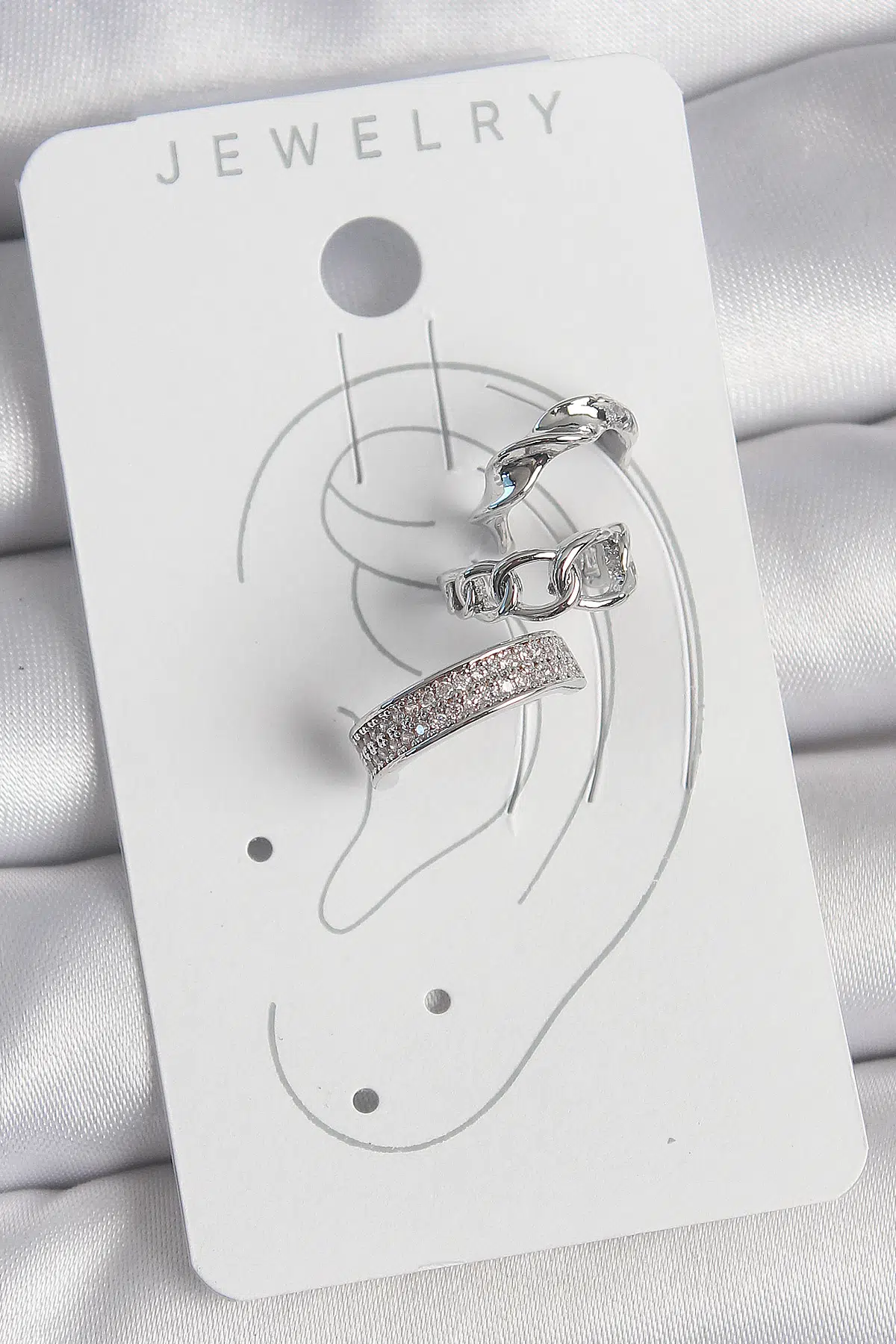 | Etiketler | Pirinç Gümüş Renk Zirkon Taşlı 3'Lü Zincir Sarmal Model Kadın Kıkırdak Küpe |