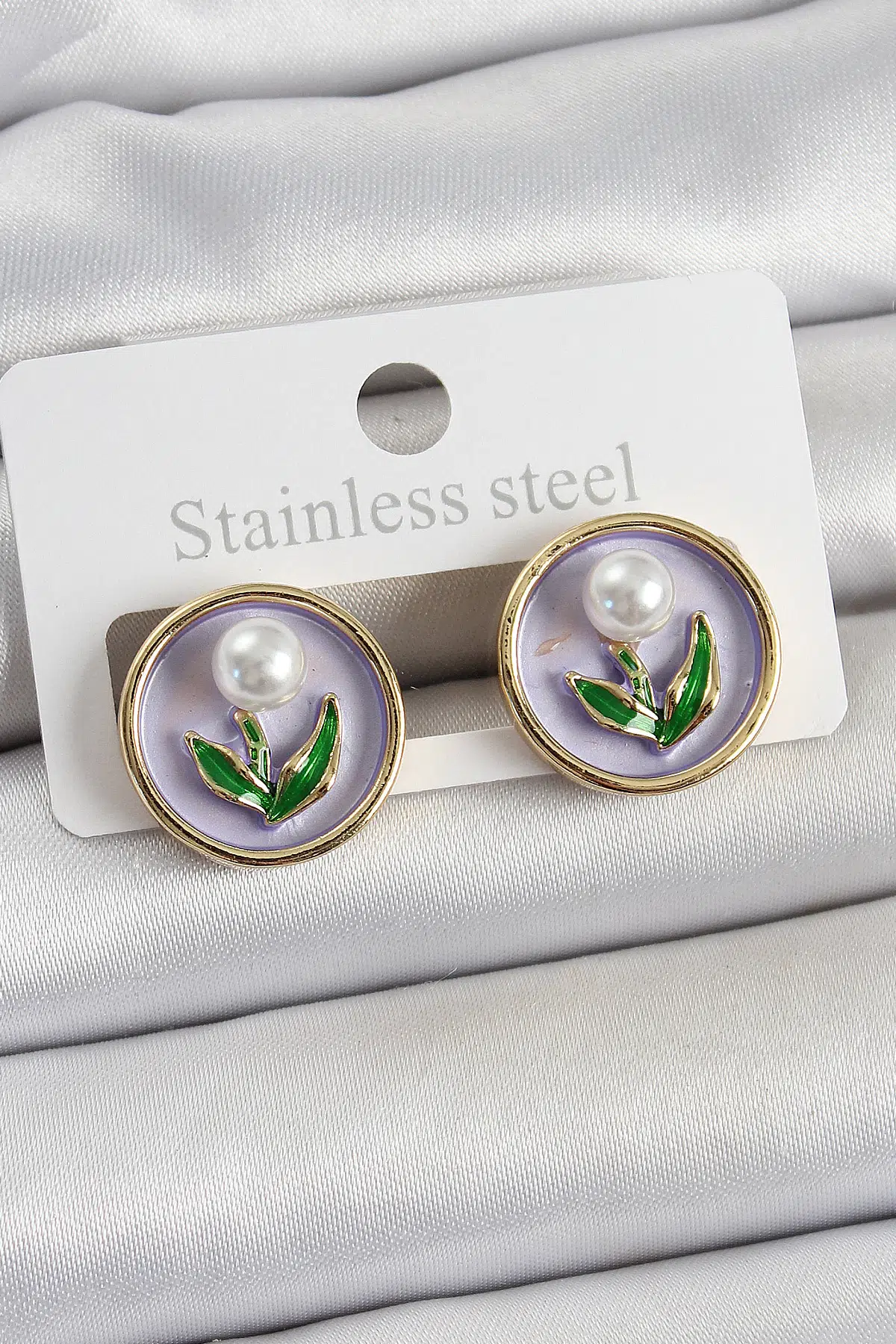 | Etiketler | Pirinç Mor Mineli Lale Figürlü Sanatsal Portre Model Gold Renk Kadın Küpe |