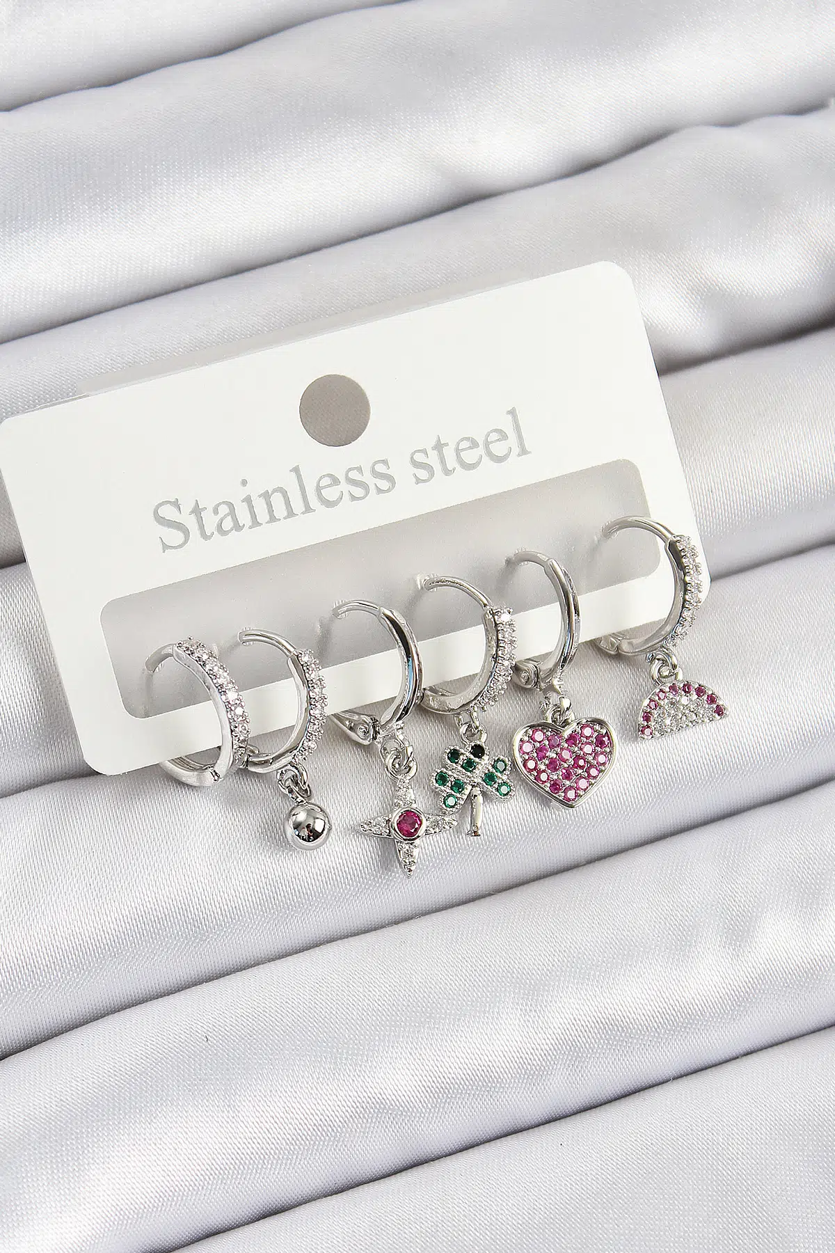 | Etiketler | Pirinç Zirkon Taşlı Karpuz Yonca Kalp Pusula Karışık Model Gümüş Renk 6'lı Set Kadın Küpe |