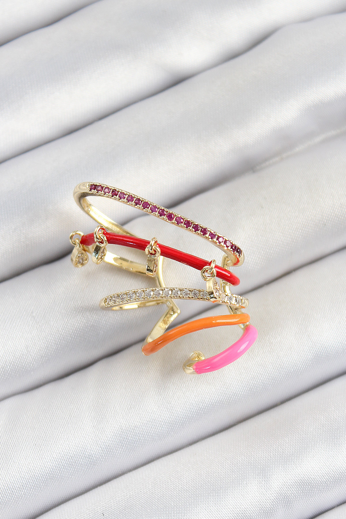 Etiketler | Pirinç Zirkon Taşlı Kırmızı Turuncu Pembe Sıkıştırma Sağ Kıkırdak Gold Renk Kadın Küpe |